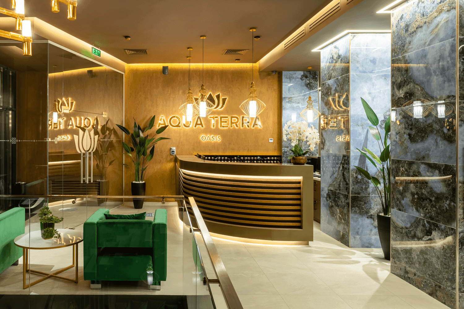 Aquaterra Oasis is a modern premium fitness club located in the Botanika district at ul. Bogdan Voevod 1. We have created a unique space for training, relaxation and recreation. Spacious gyms, a spa area with hydromassage, hammam and saunas, a cozy cafe and a variety of group classes - all this awaits you.